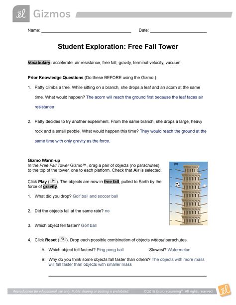 Read Online Free Fall Tower Answers Reader